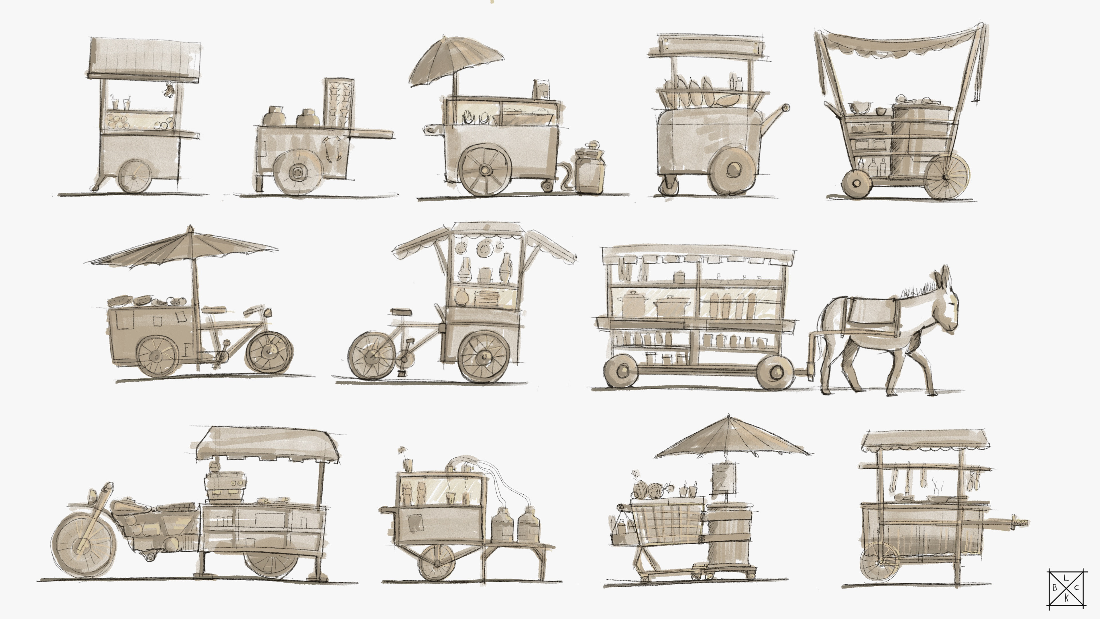 Methodology: Brainstorm/research, Moodboards, References, Thumbnailing, Line Art, flat colour