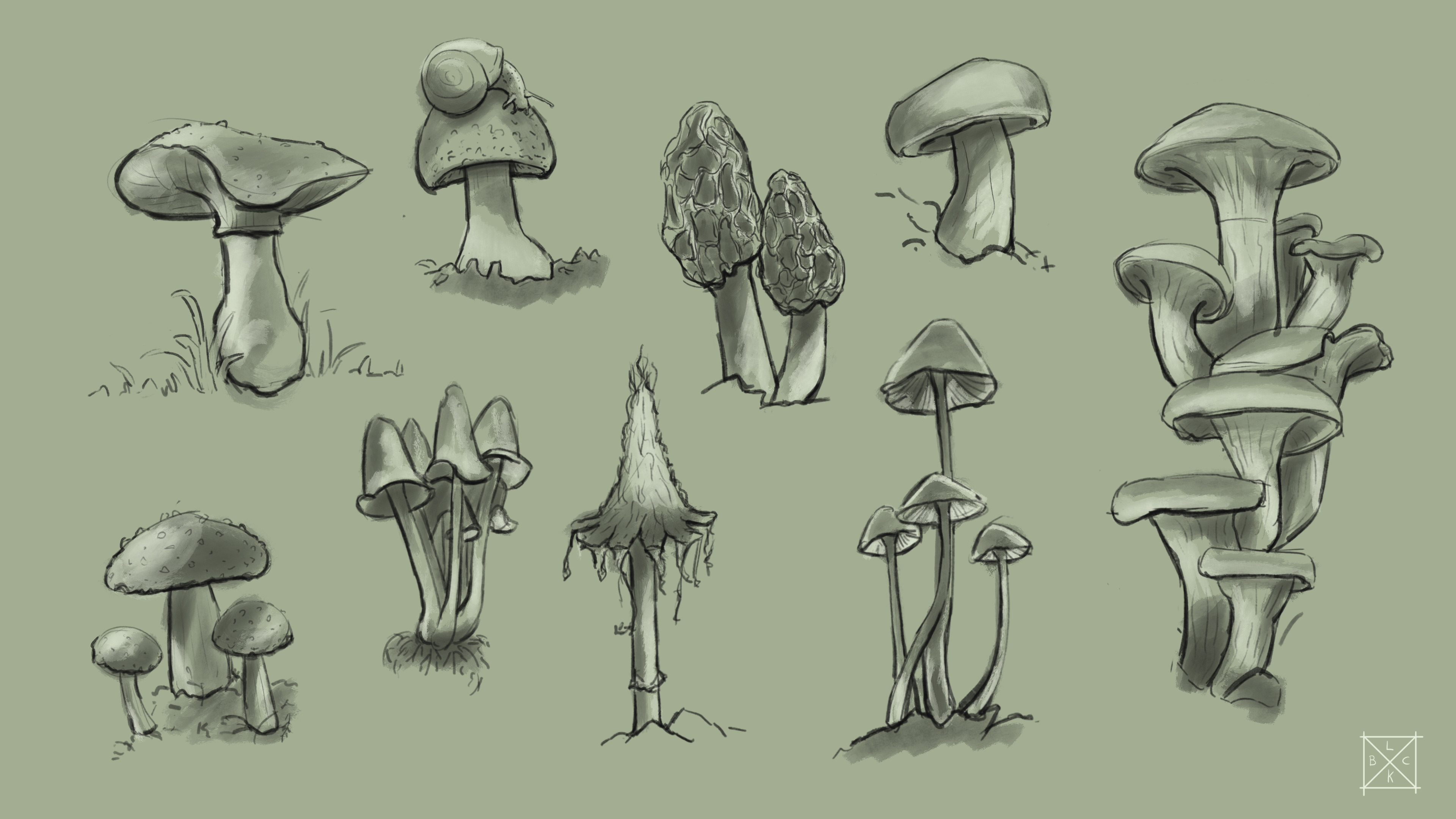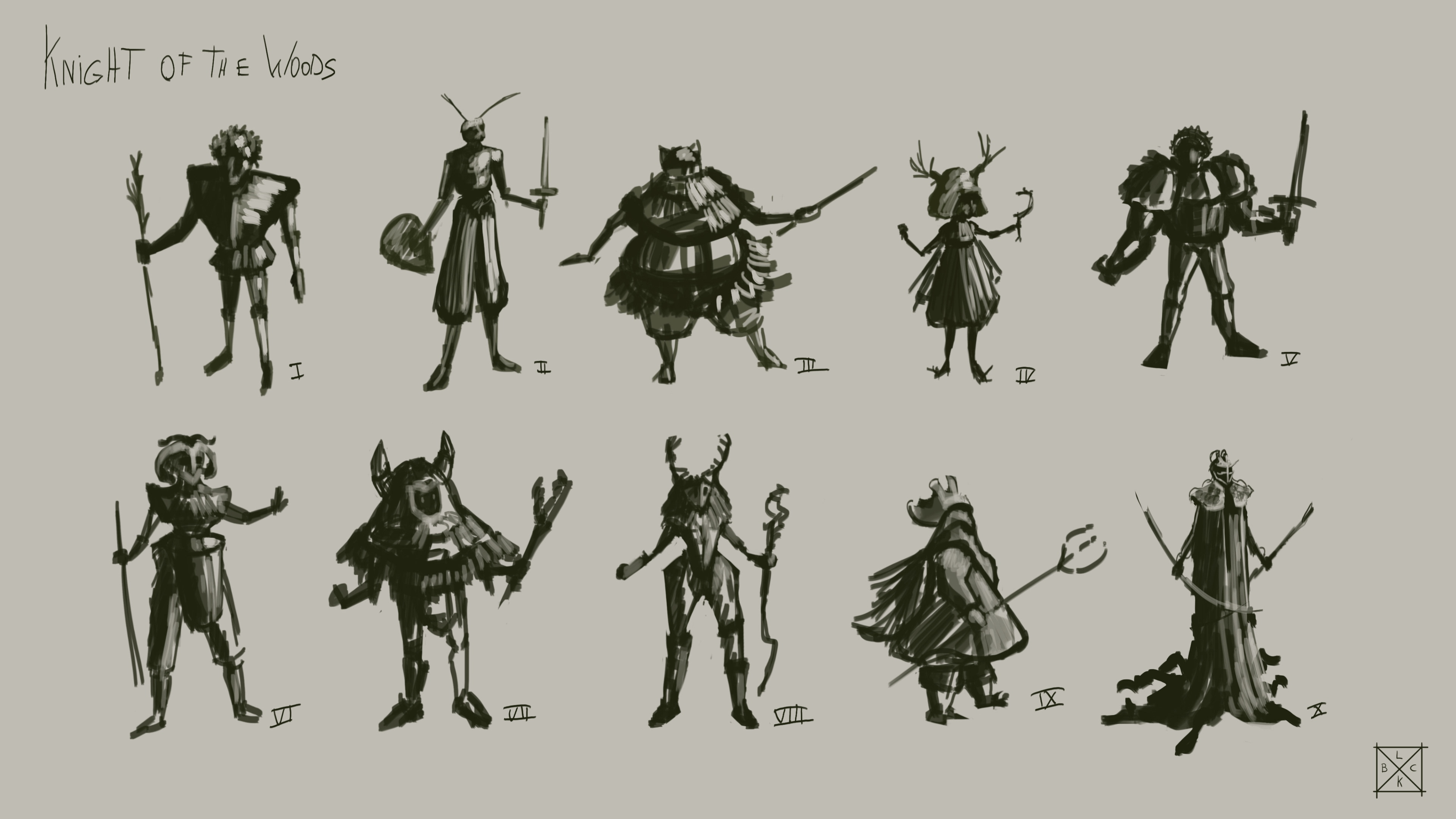 Studies and designs made to practise light , colour, compositions, gestures, thumbnailing, characters, ...